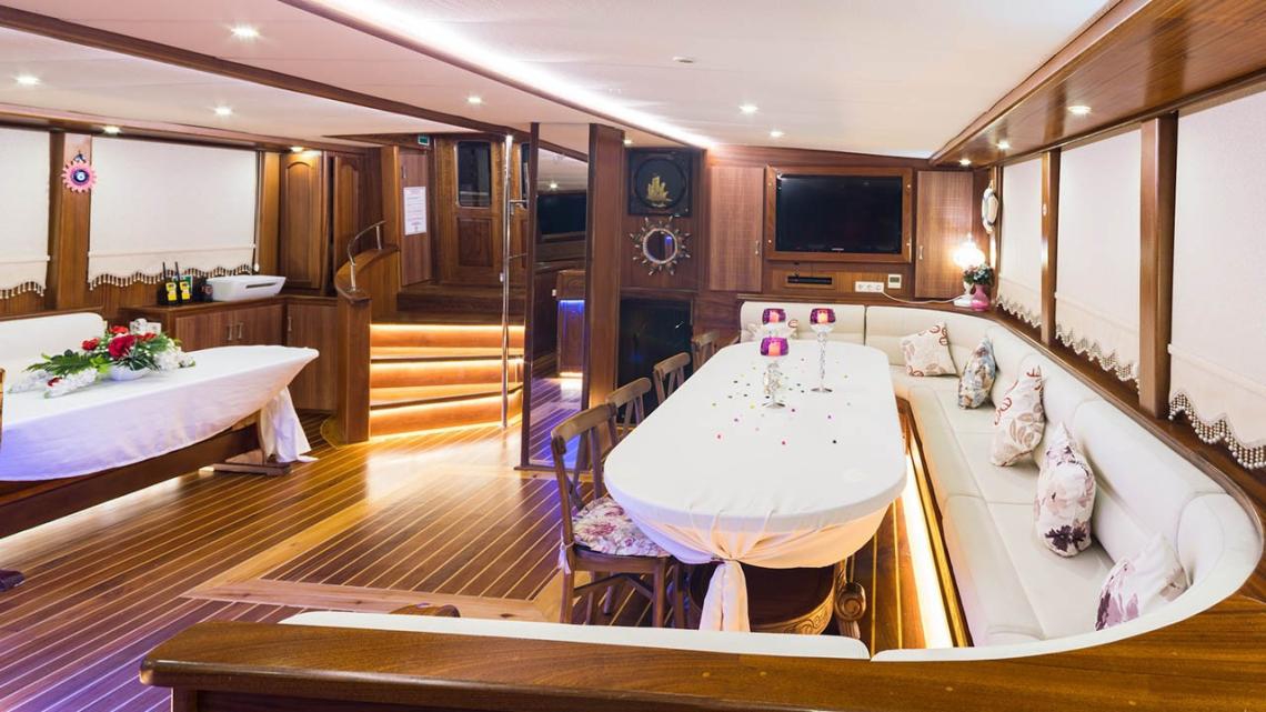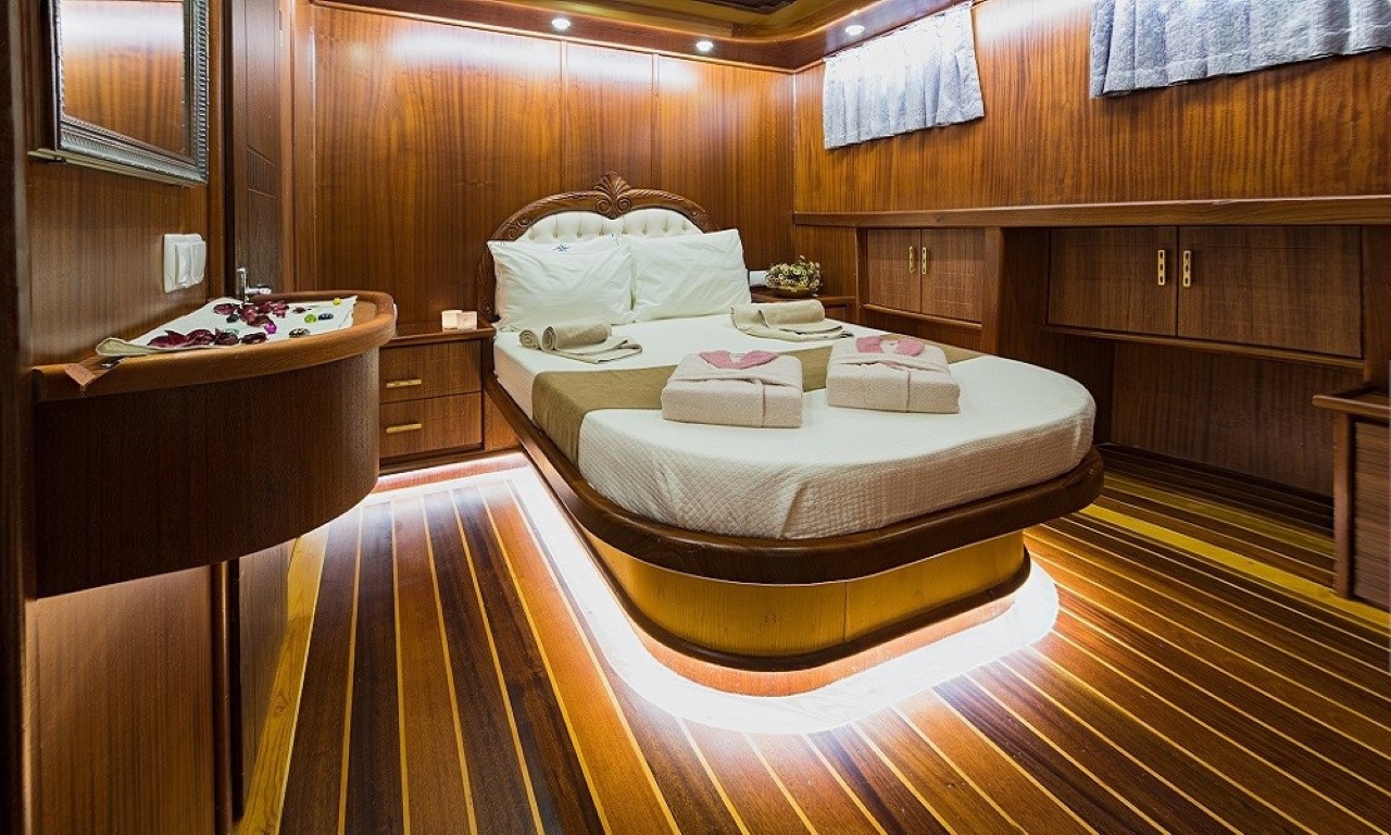 5 kişilik deneyimli mürettebat tüm detayları sessizce organize eder. Mutfakta su ısıtıcısından bulaşık makinesine kadar her şey yerli yerinde. Dilerseniz alışverişi biz yaparız ya da sevdiğiniz ürünleri kendiniz getirebilirsiniz. Marmaris gulet kiralama alanındaki deneyimimizle her aşamada yanınızdayız.