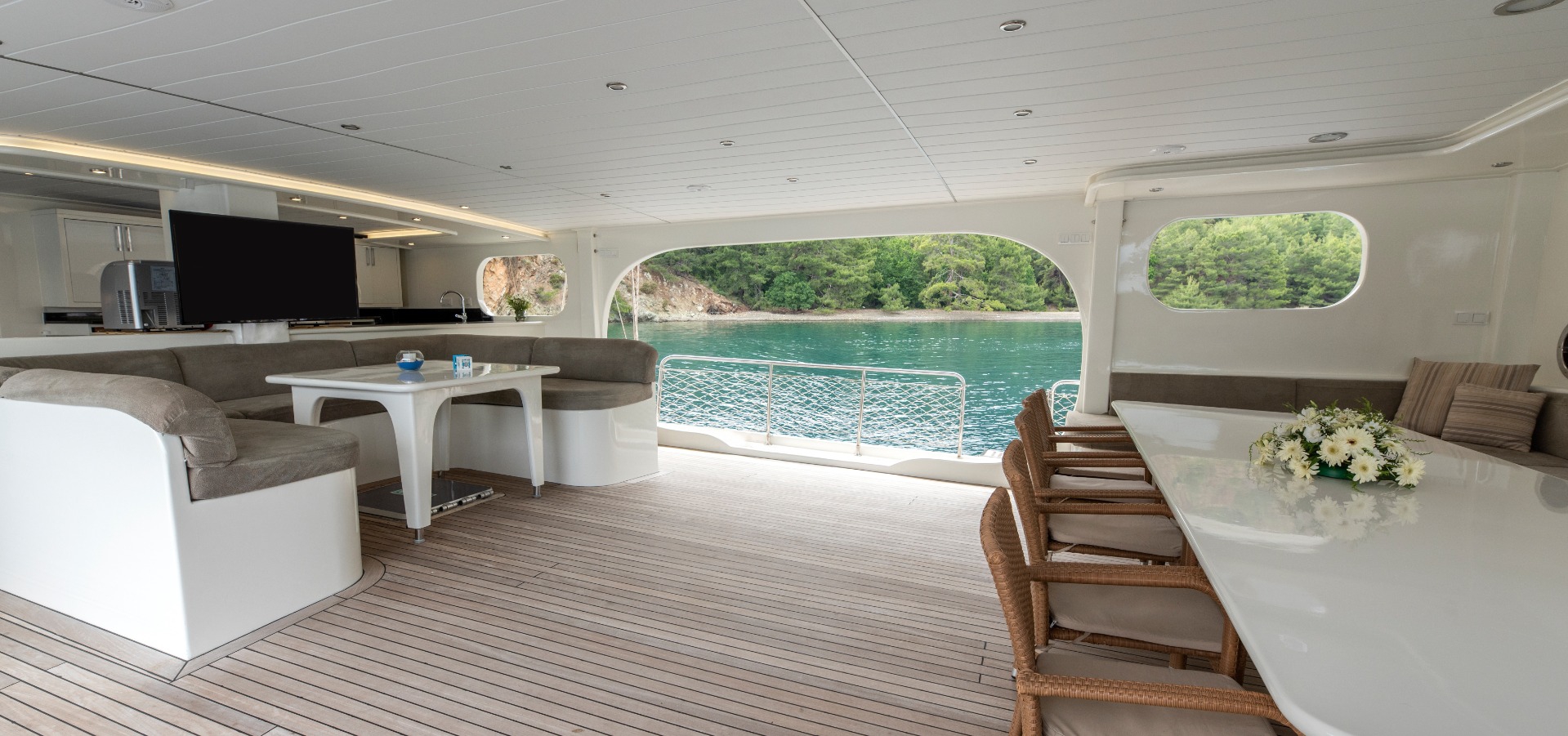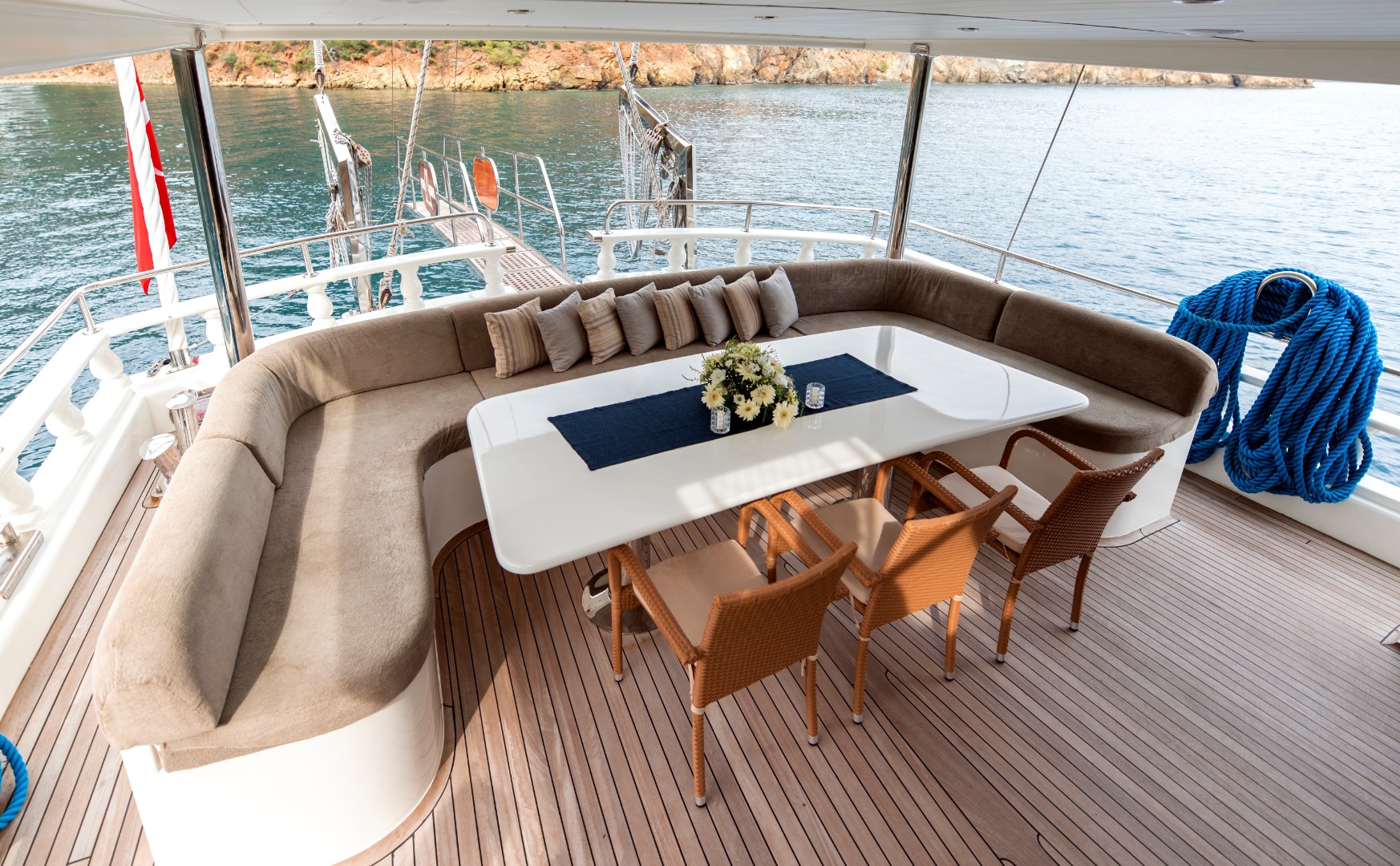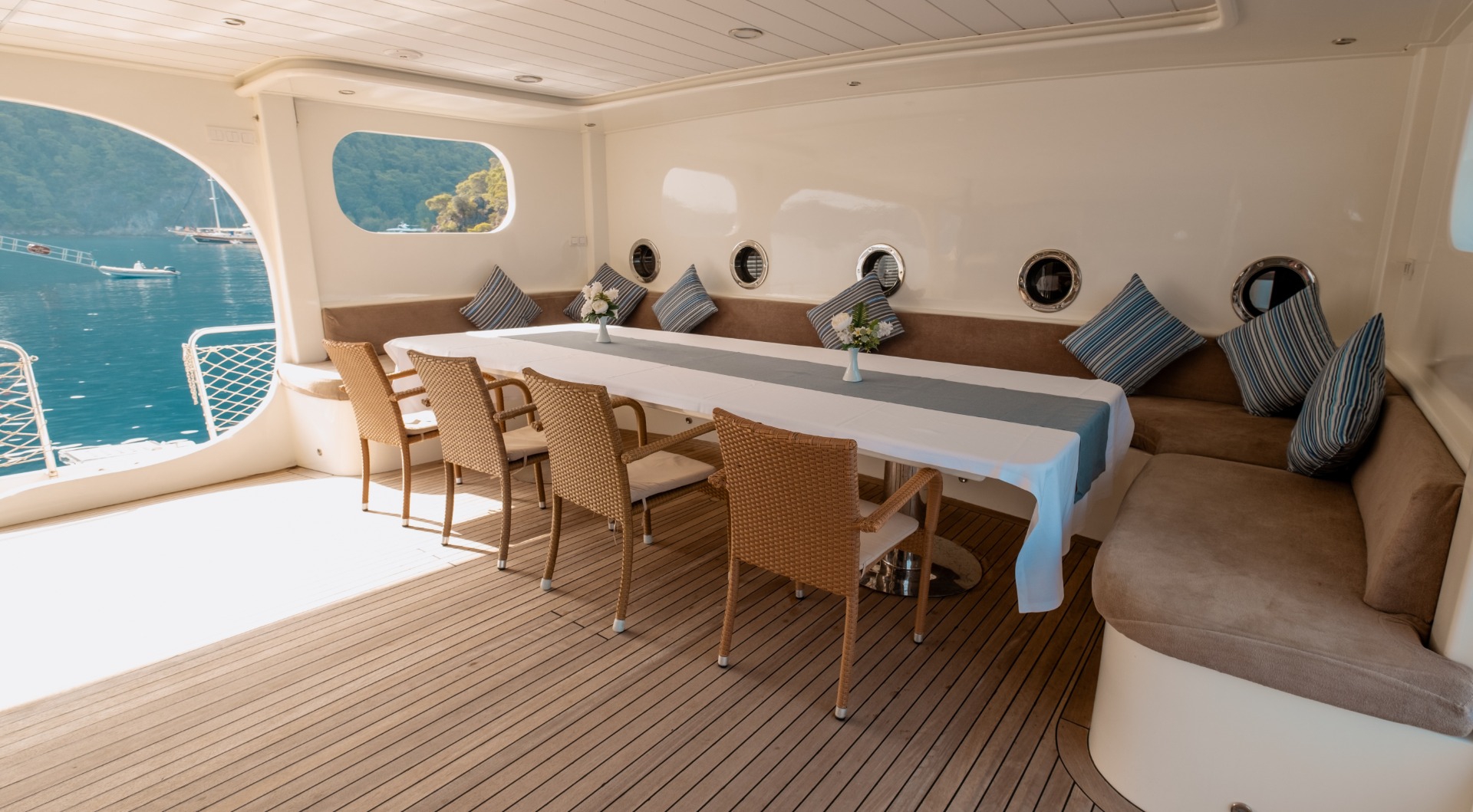 The yacht is equipped with air conditioning, Wi-Fi, satellite connection, and LCD TVs in both the salon and cabins. These comforts are there when you want them. But after a while, they quietly fade into the background. In the bays of Fethiye, the real luxury is the pace itself.