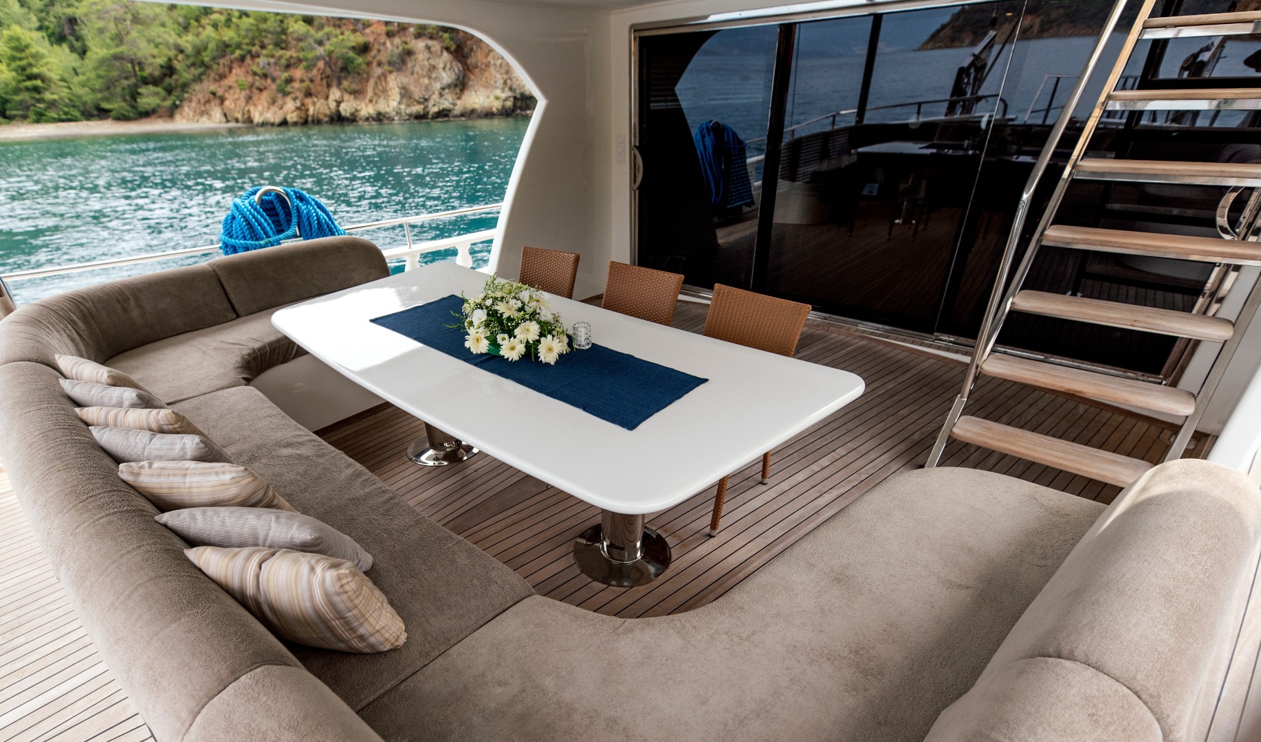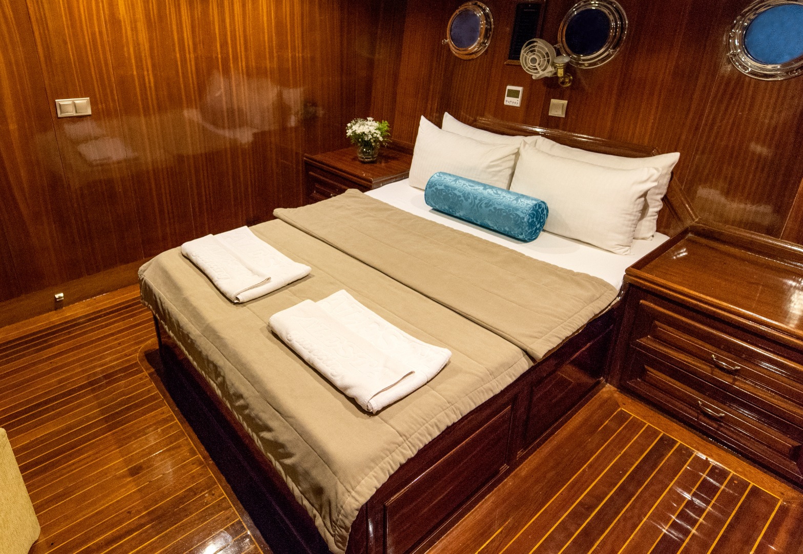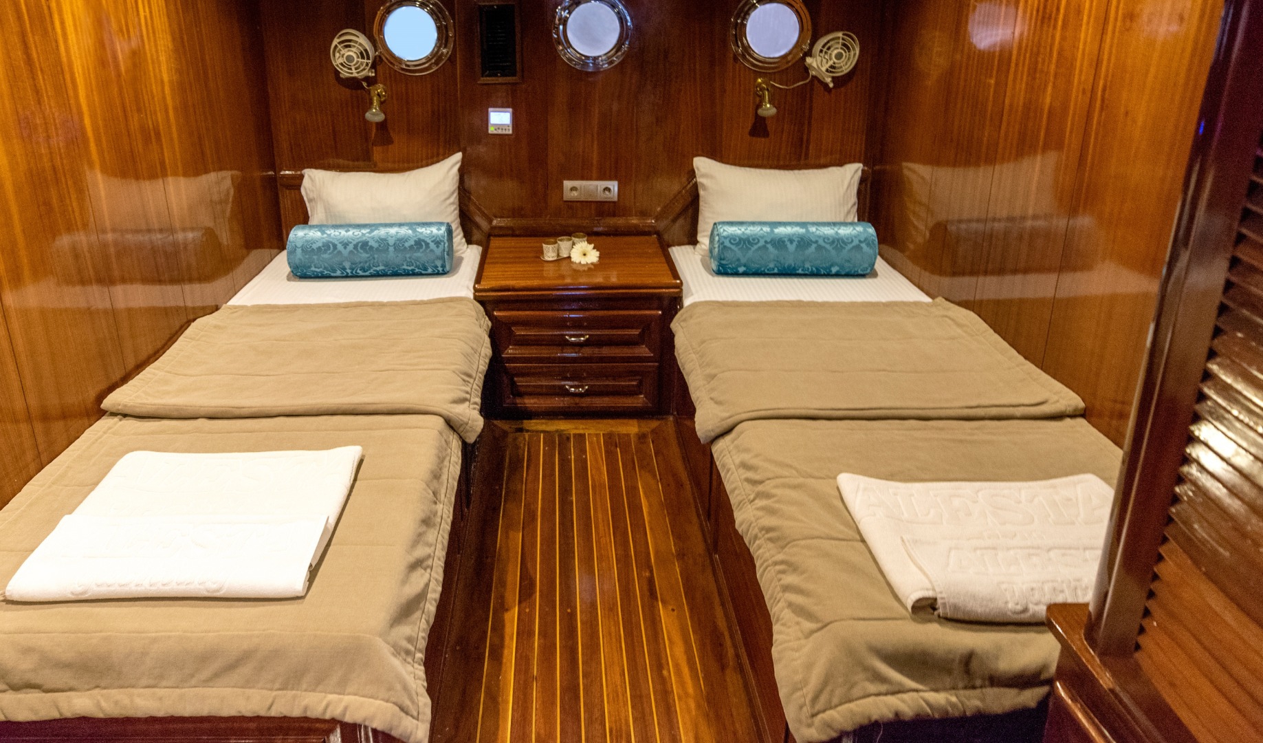 The yacht is equipped with air conditioning, Wi-Fi, satellite connection, and LCD TVs in both the salon and cabins. These comforts are there when you want them. But after a while, they quietly fade into the background. In the bays of Fethiye, the real luxury is the pace itself.