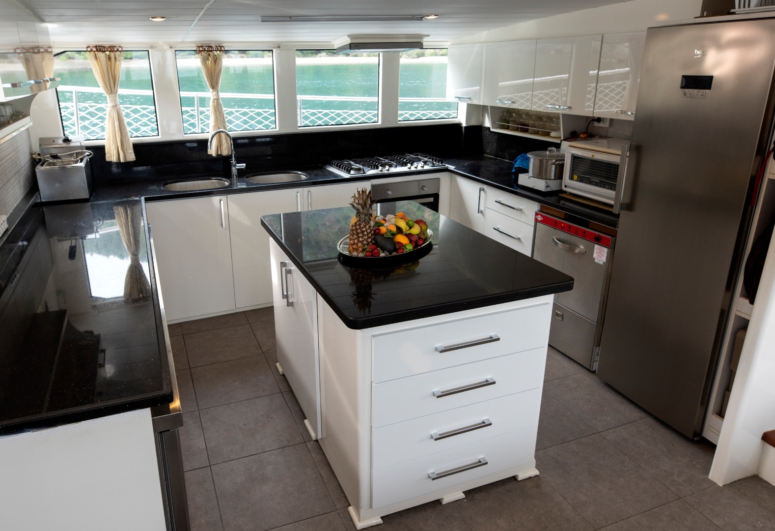 The five person crew works quietly in the background. Everything runs smoothly without drawing attention. The kitchen is well equipped with a water heater, ice machine, coffee machine, oven, refrigerator, and dishwasher. If you wish, we plan meals together before the trip. You can handle provisioning yourself or leave it to us. On Kayhan 11, nothing is excessive. Everything feels balanced.
