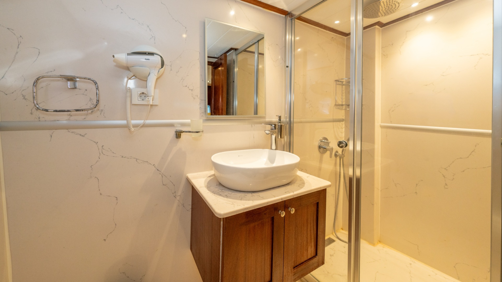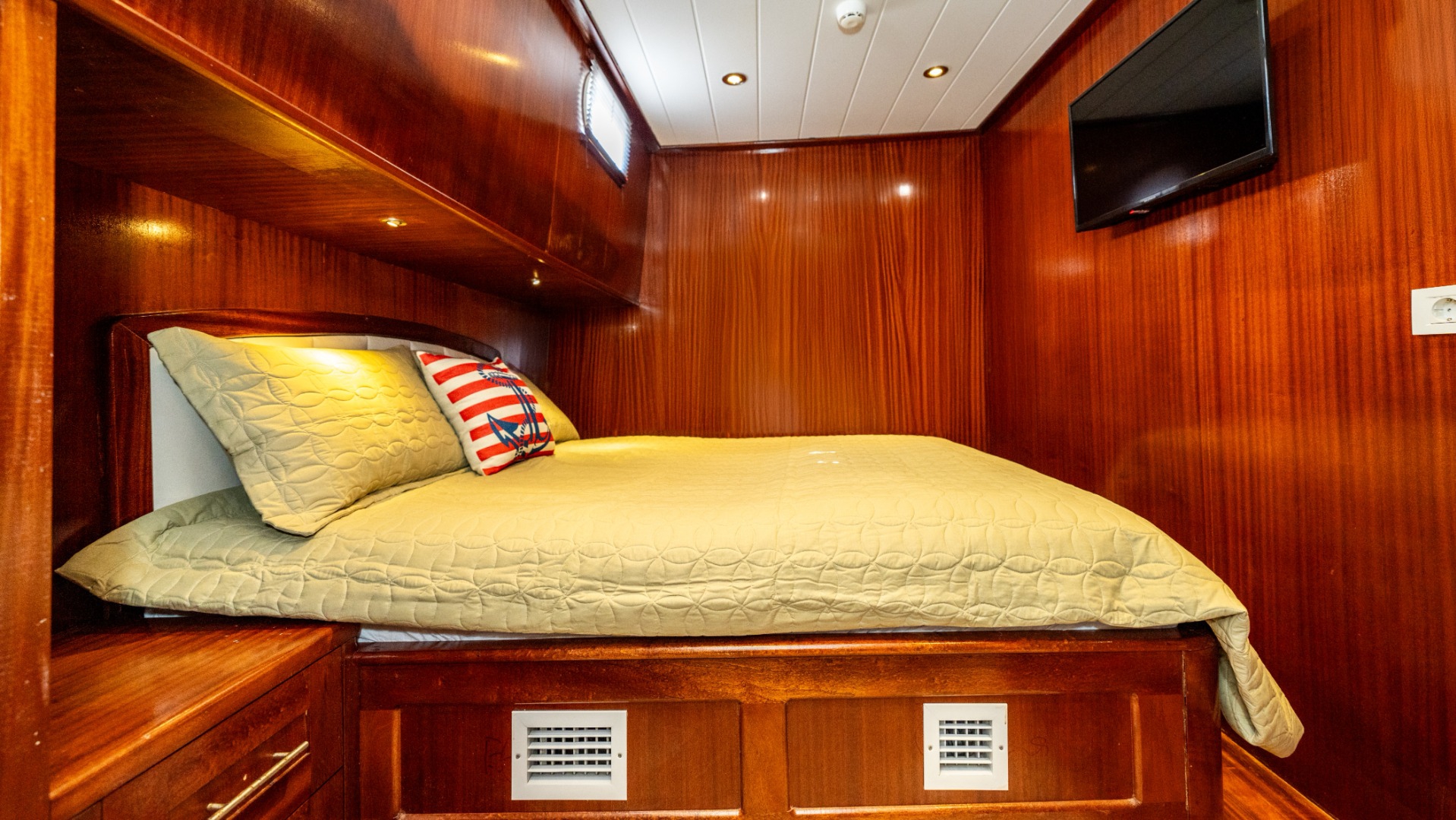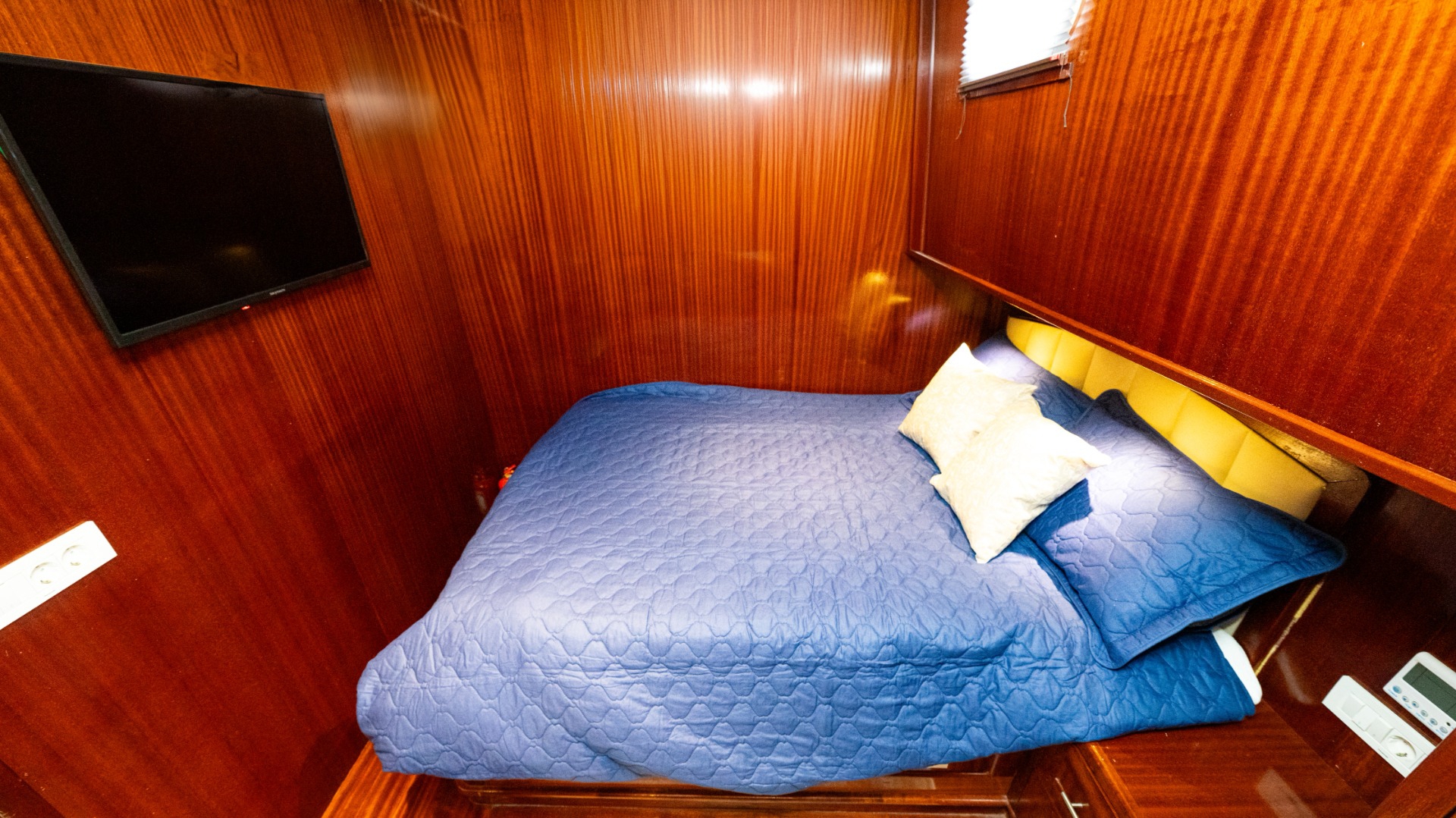 2023’te inşa edilen bu 21 metrelik gulet, ne eksik ne fazla. 4 kabin var: 2’si master, 2’si double. Toplam 8 kişi. Herkes için ayrı bir alan, her kabinde duş, klima. Konfor var ama gösteriş değil. Çünkü gösteriş geçici, huzur kalıcı.