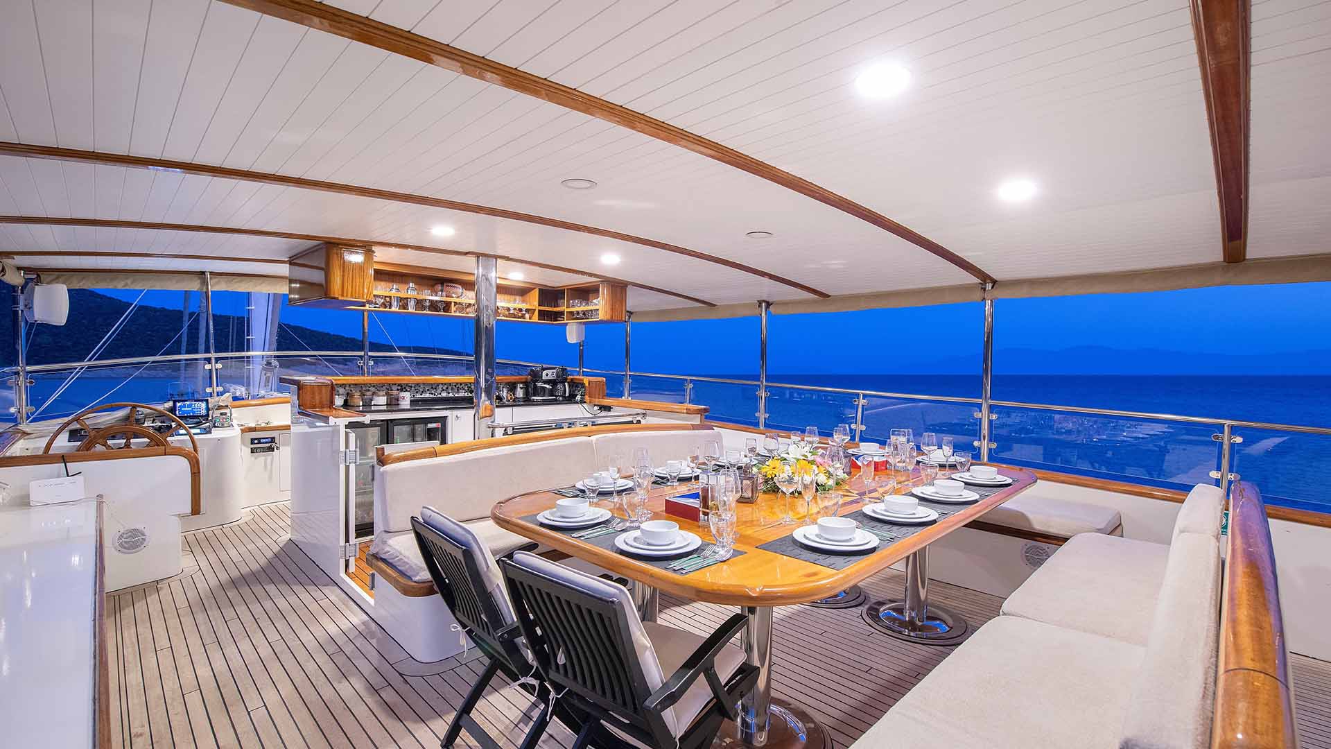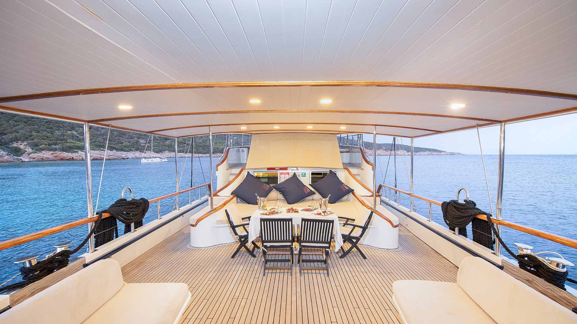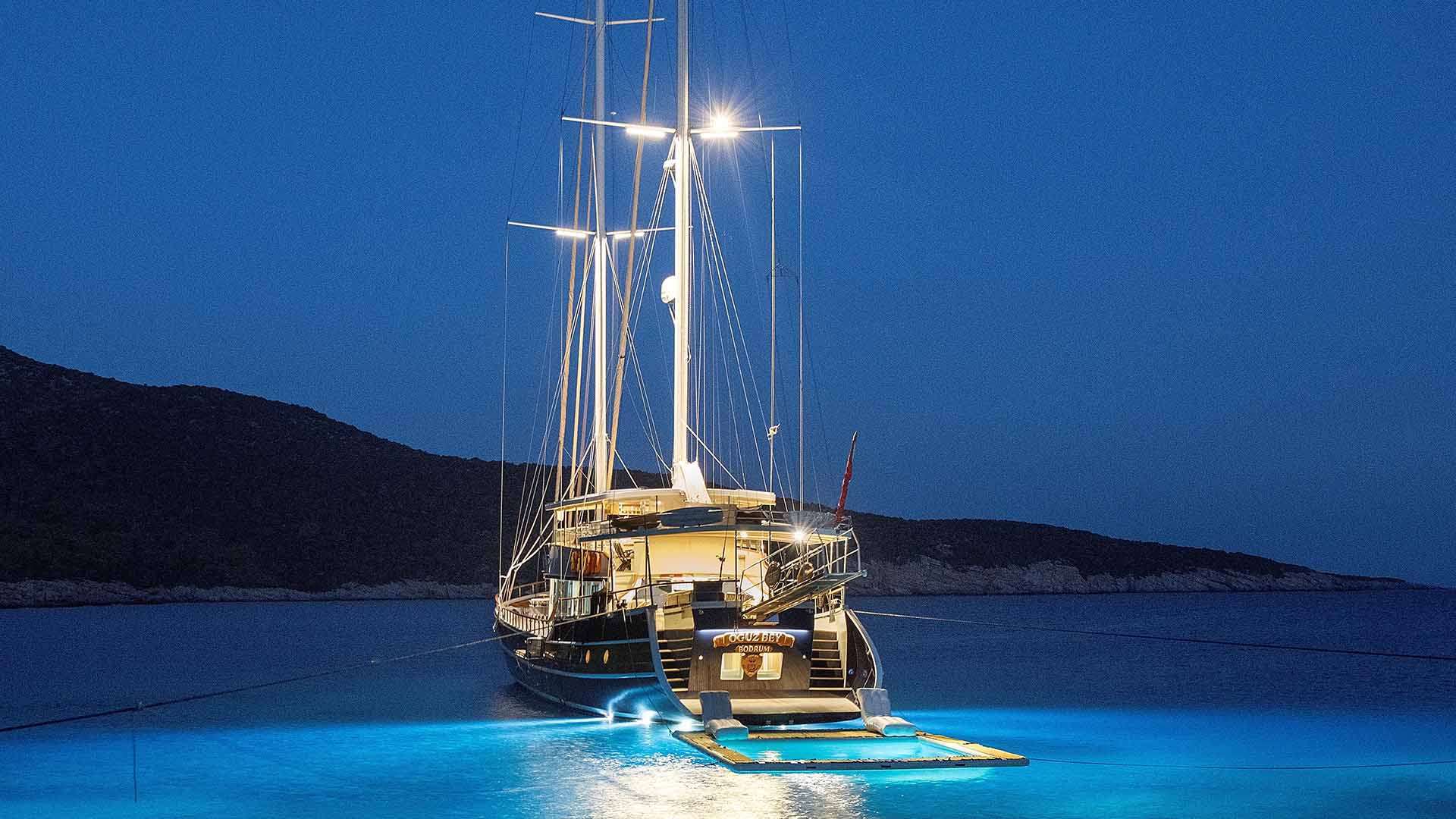 Oguz Bey, Bodrum limanından hareket ederek Ege’nin en özel koylarına ulaşma imkanı sunar. Gün içinde berrak sularda yüzme molaları, sakin koylarda demirleme ve doğayla iç içe bir rota deneyimi yaşanır. Program kaptan ile birlikte planlanabilir veya tamamen akışına bırakılabilir. 35 metre uzunluğu ve geniş güvertesi ile konforlu ve dengeli bir seyir sağlar.