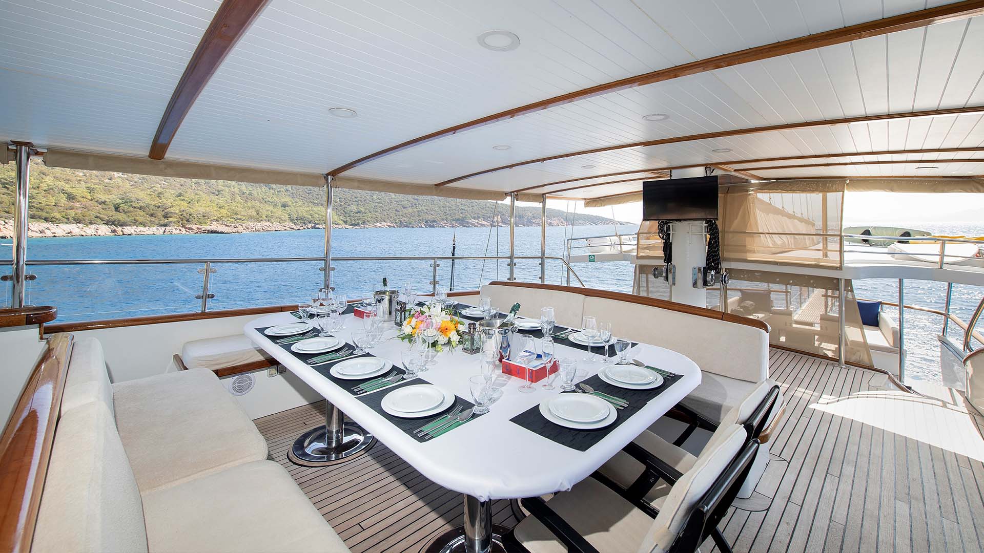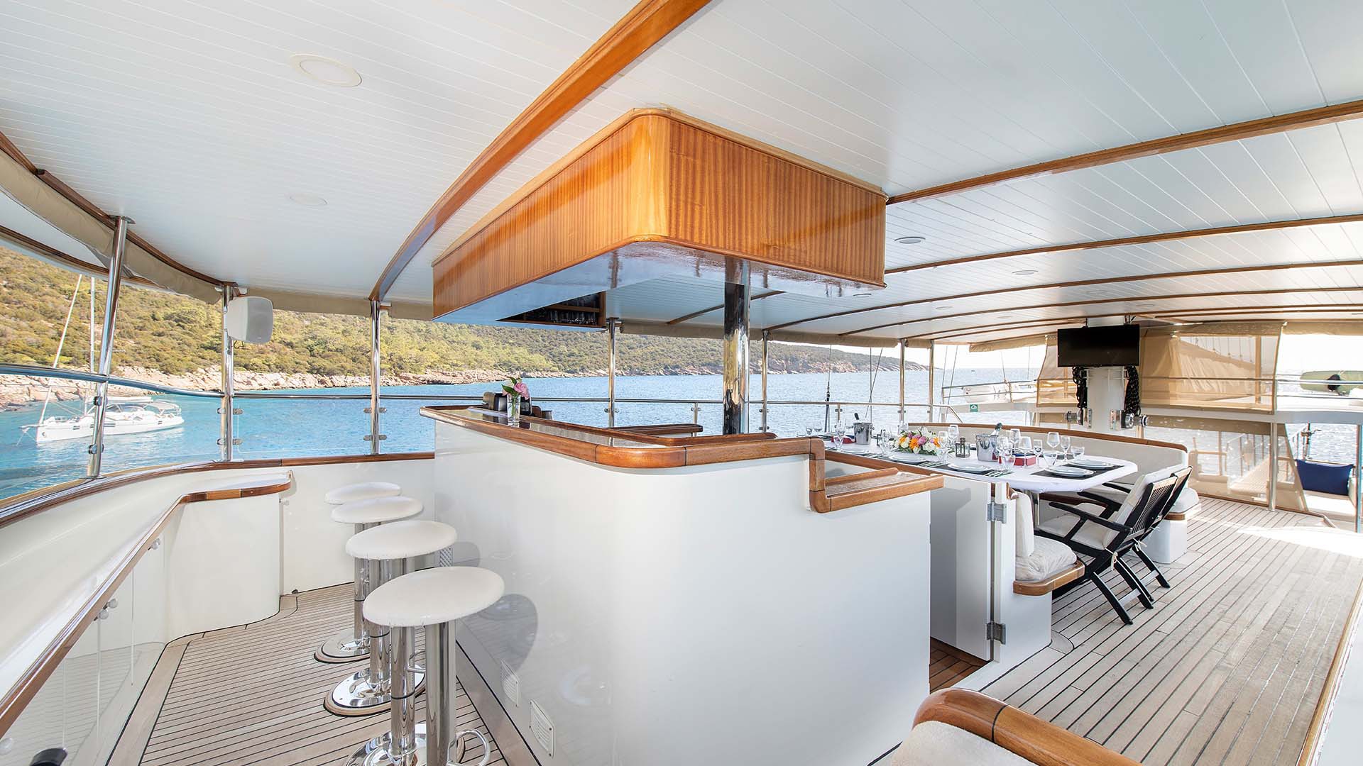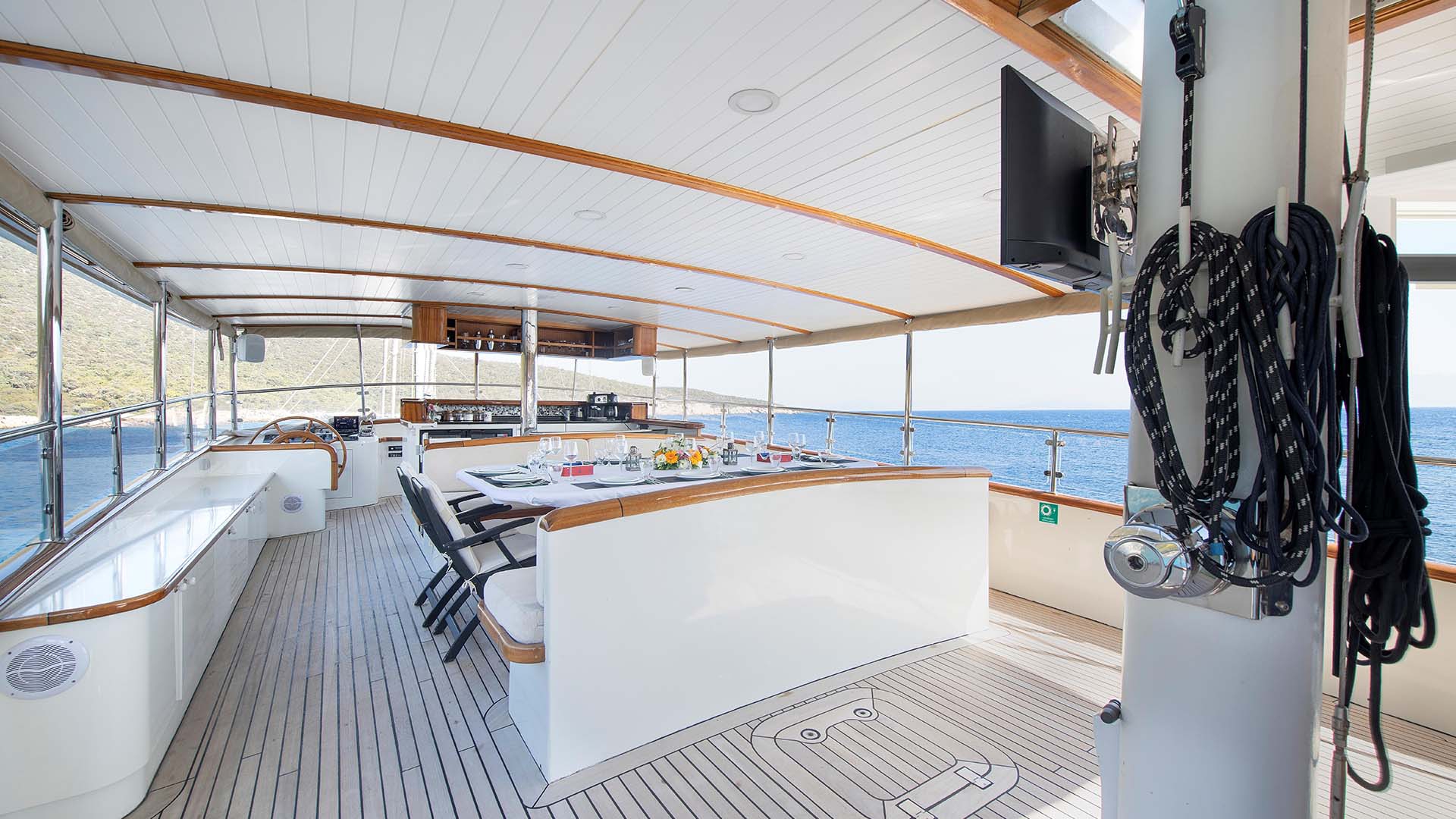 Oguz Bey, Bodrum limanından hareket ederek Ege’nin en özel koylarına ulaşma imkanı sunar. Gün içinde berrak sularda yüzme molaları, sakin koylarda demirleme ve doğayla iç içe bir rota deneyimi yaşanır. Program kaptan ile birlikte planlanabilir veya tamamen akışına bırakılabilir. 35 metre uzunluğu ve geniş güvertesi ile konforlu ve dengeli bir seyir sağlar.