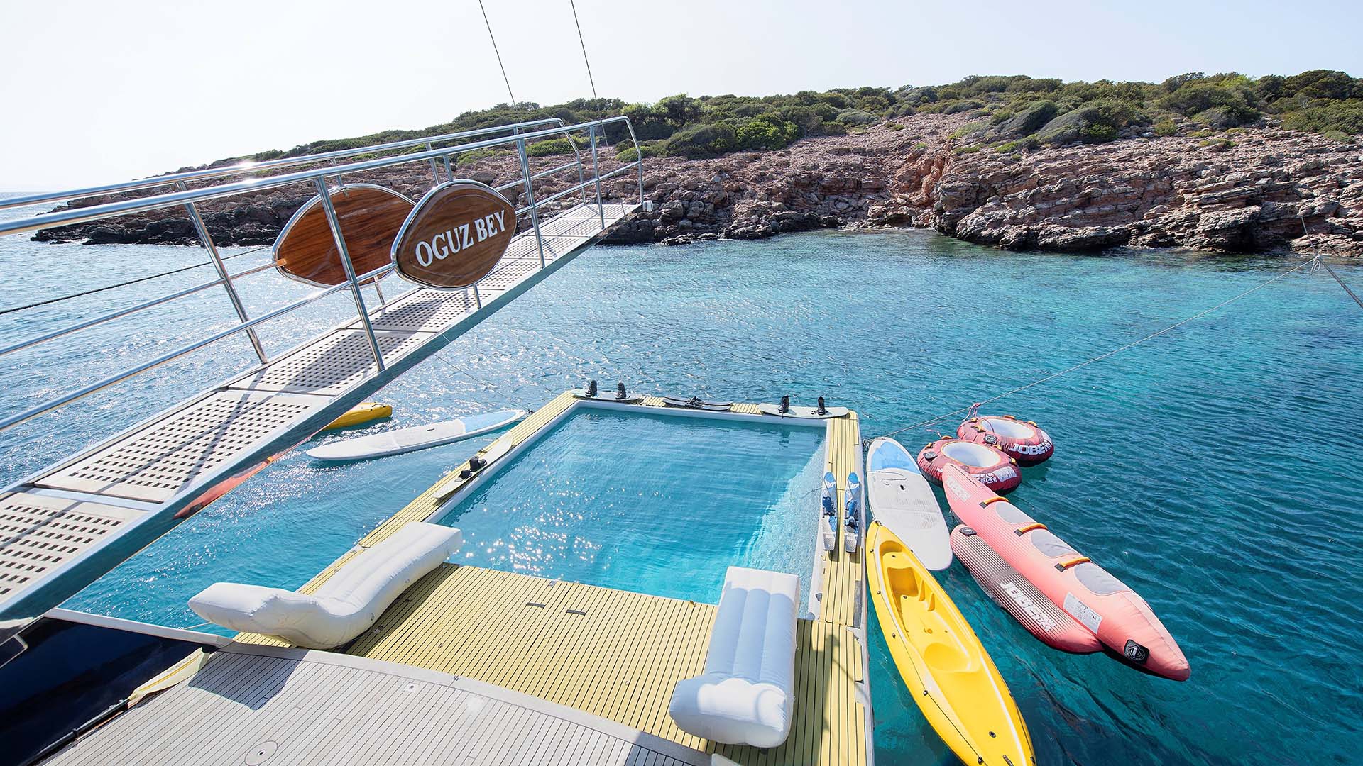 Oguz Bey, deniz keyfini çeşitlendiren aktiviteler sunar. Kano ile koyları keşfedebilir, güvertede keyifli vakit geçirebilir ve doğanın sakinliğini hissedebilirsiniz. Geniş yaşam alanları, grup aktiviteleri ve dinlenme anları için ideal bir ortam oluşturur.