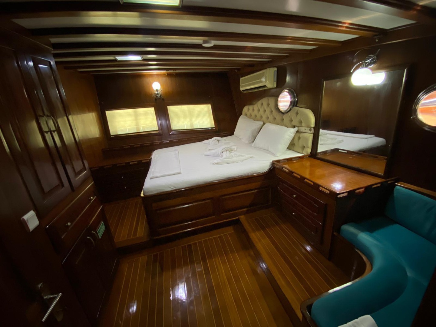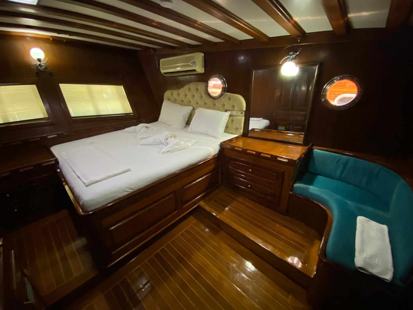 Fethiye-Göcek hattında seni bekleyen bu gulet, tam 37 metre uzunluğunda. 2005'te inşa edildi ama 2022’de baştan aşağı elden geçti. Artık çok daha derli toplu, çok daha konforlu. 8 kabinli bu gulet, 16 kişilik gruplar için birebir. Arkadaş grubu musunuz? Ailece mi kaçmak istiyorsunuz? Sığarız, yer bol.